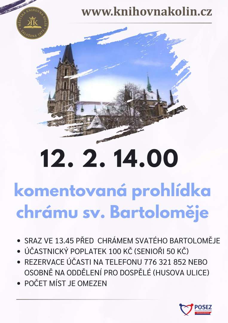 Komentovaná prohlídka chrámu svatého Bartoloměje. Sraz ve 13. 45 před chrámem. Rezervace účasti na telefonu 776 321 852. Počet míst je omezen.