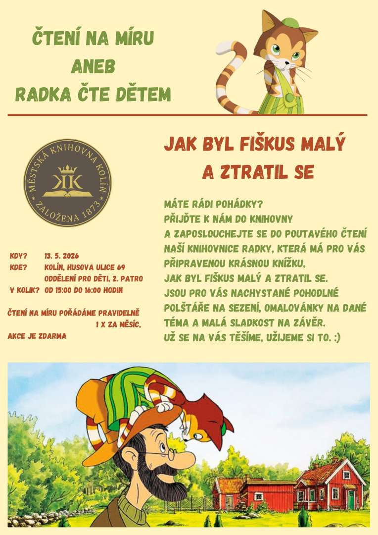 Máte rádi pohádky? Přijďte k nám do knihovny a zaposlouchejte se do poutavého čtení naší knihovnice, tentokrát s knížkou Jak byl Fiškus malý a ztratil se.