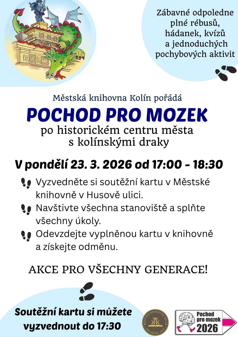 Zábavné odpoledne plné rébusů, hádanek, kvízů a jednoduchých pohybových aktivit. Pro všechny věkové kategorie. Start v MěK Kolín v Husově ulici, kde od 17 do 17.30 održíte soutěžní karty.